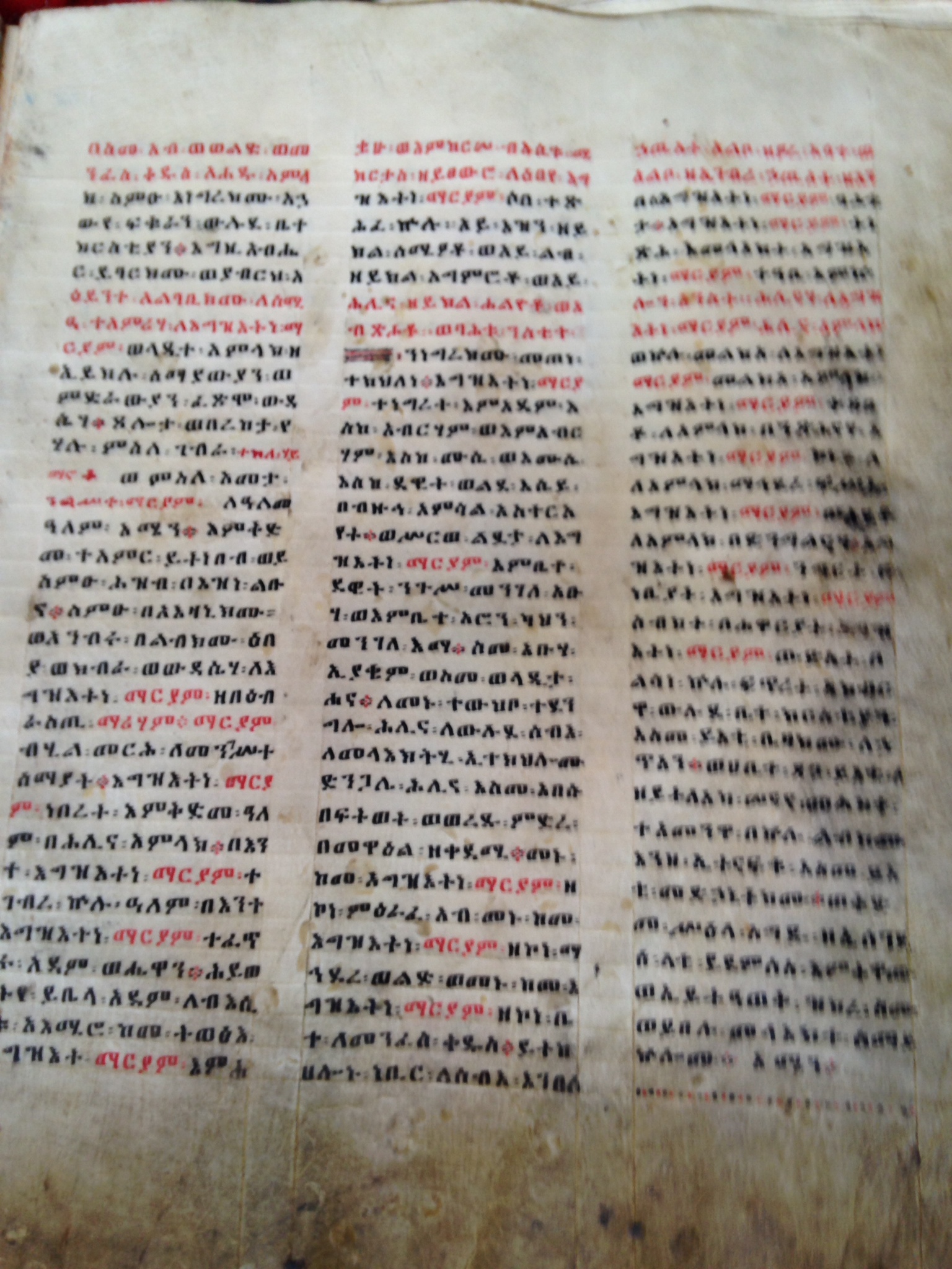 Above: An old document written in Ge’ez, kept at the Axum Cathedral.