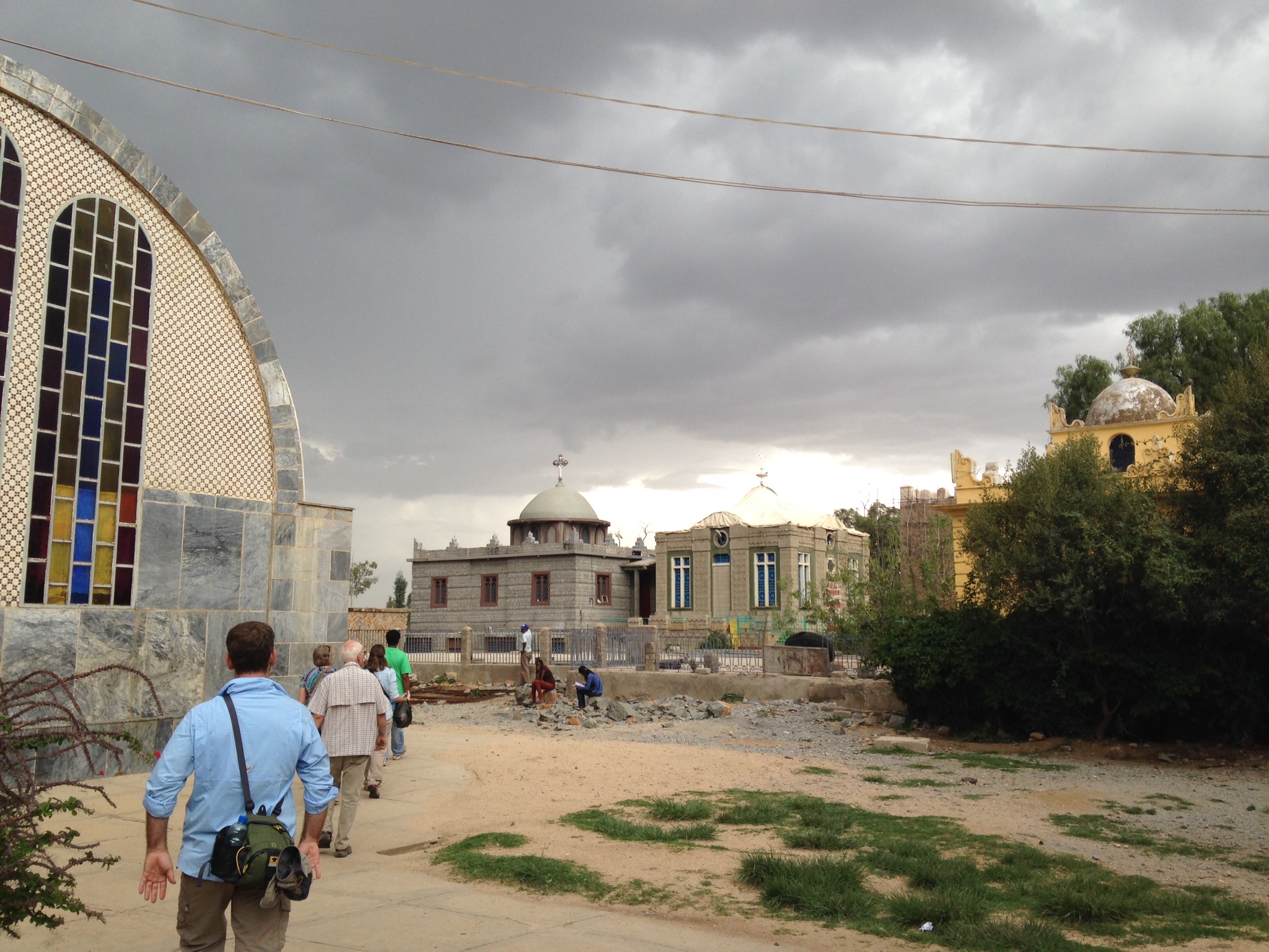 Above: To the right of the Axum Cathedral are three smaller chapels, one of which is said to hold the Ark of the Covenant. As I wondered, letting my imagination fly, storm clouds eerily began to form over the chapels…